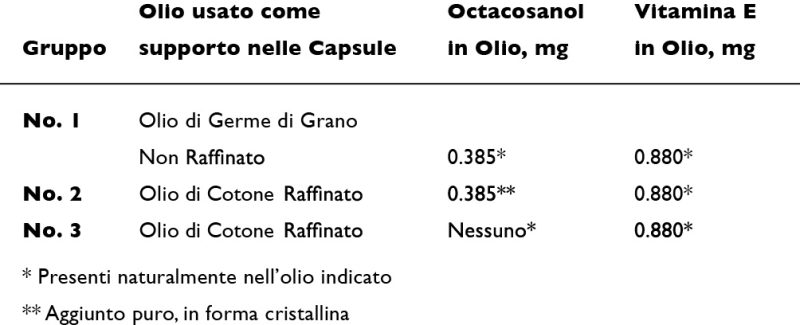 1) L’Octacosanol era il fattore attivo liberatore di energia, poiché il miglioramento della performance fu correlato all’Octacosanol e non ad altre variabili.