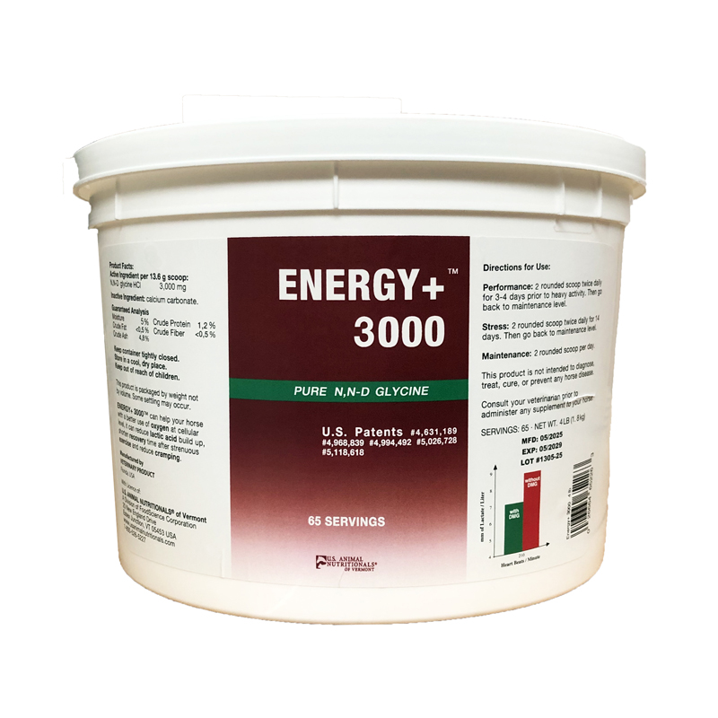 Energy+ 3000 è un alimento a base di N,N-D glicina (DMG) scientificamente formulata per cavalli da competizione.